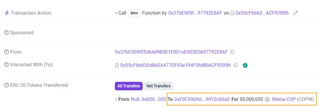 We assume the Wenia Operation account is the one that gets the amount of token minted every time. Feel free to comment on this.